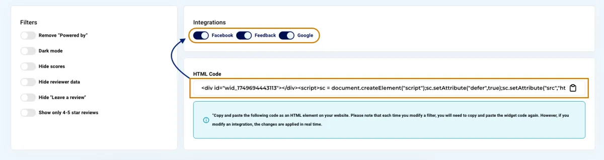 Review Sharing: Showcase your best reviews on your website and social media using widgets and posts.